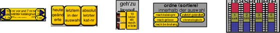 der katalog ist damit nicht mehr nur wie ein mindmap oder ein inhaltsverzeichnis monohierarchisch strukturiert. die häufigsten suchfunktionen, eingaben und befehle sind durch tastendruck auslösbar. wer gewohnt ist, über betriebssysteme die dateien zu steuern, kann sich die ergonomie kaum vorstellen, die schon nur damit ensteht, wenn statt eines hektischen doppelklicks nur einfach gedrückt werden braucht. seit 8 jahren ist keine funktion mit dem physischen katalog mehr rascher ausführbar, als mit dem elektronischen.